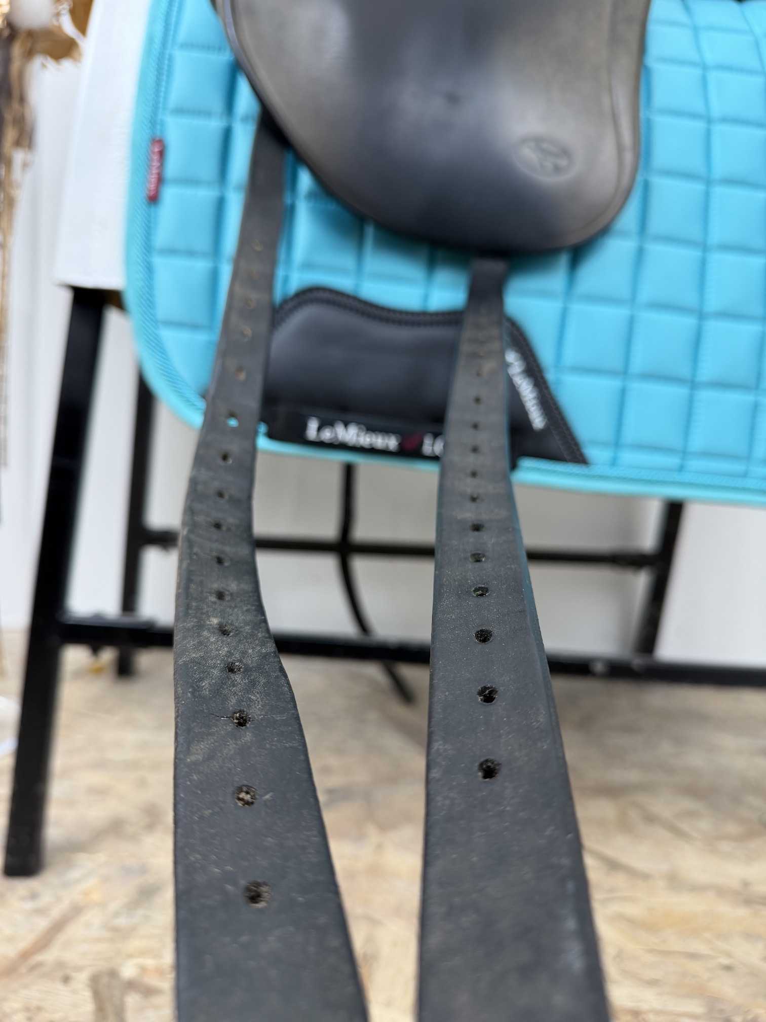 Maintien en haut de cuisse qui favorise la descente de jambe et la verticalisation du cavalier.